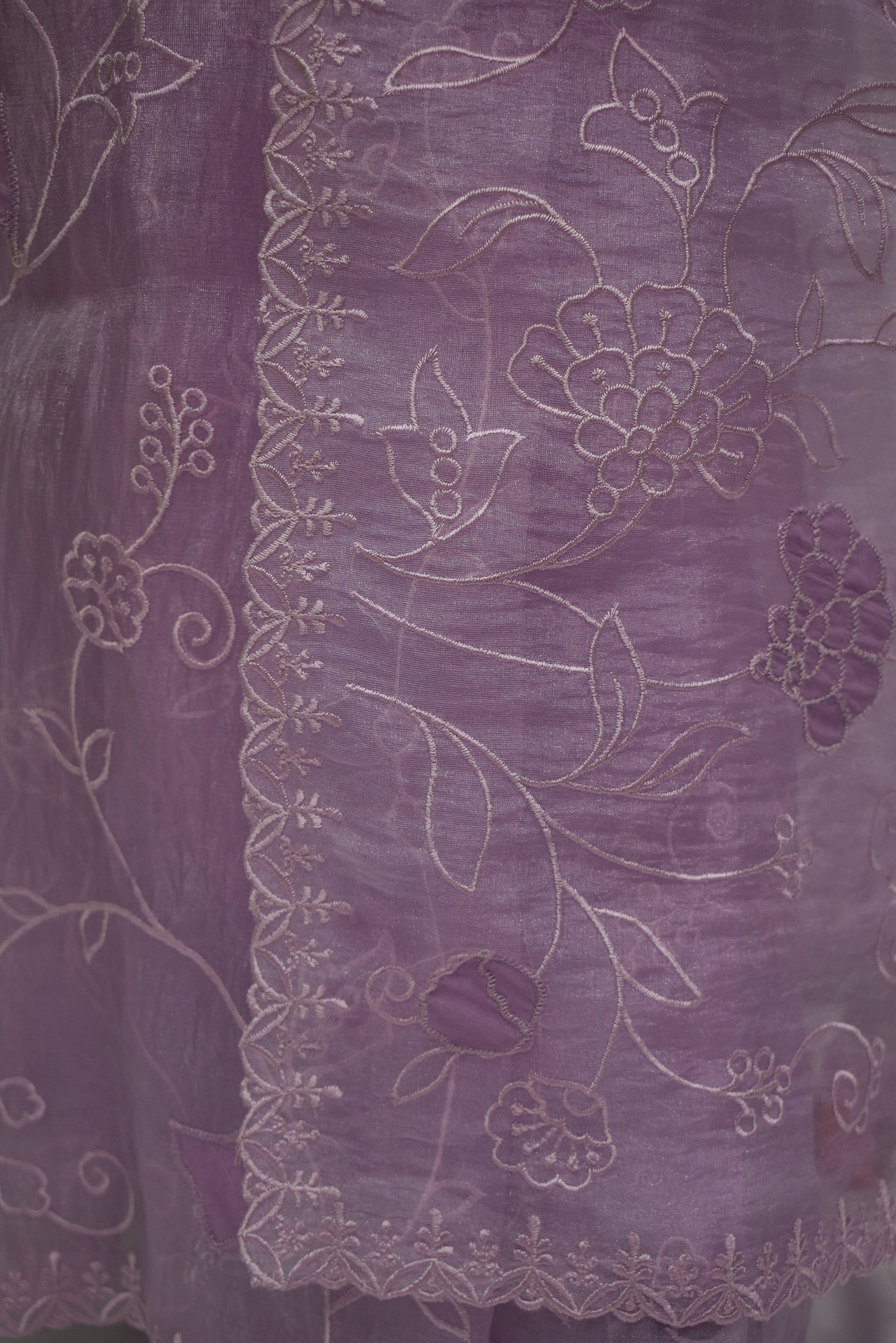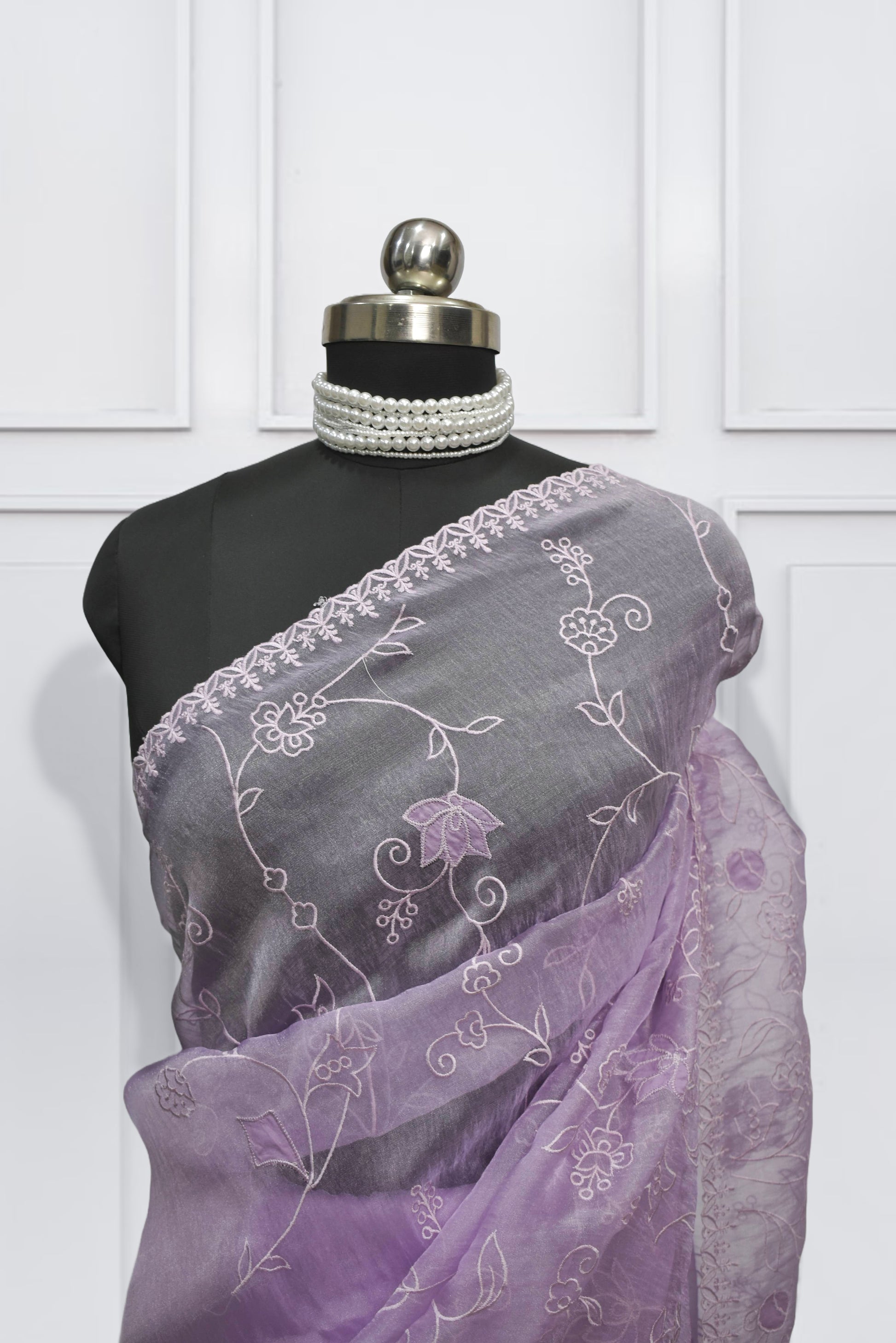 Lavender Organza Saree with All over Embroidery